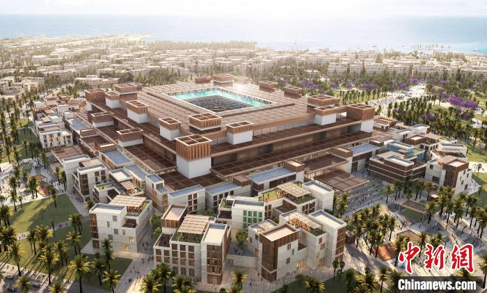 圖為2034年沙特世界杯體育場及周邊體育村項目效果圖。(中國鐵建國際集團 供圖)
