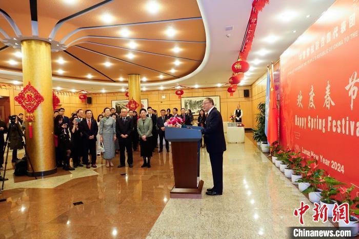 當(dāng)?shù)貢r間2月23日,中國常駐聯(lián)合國代表團在紐約駐地為中國籍國際職員和駐紐約新聞機構(gòu)以及中資企業(yè)代表舉辦龍年元宵節(jié)聯(lián)誼會。中新社記者廖攀攝