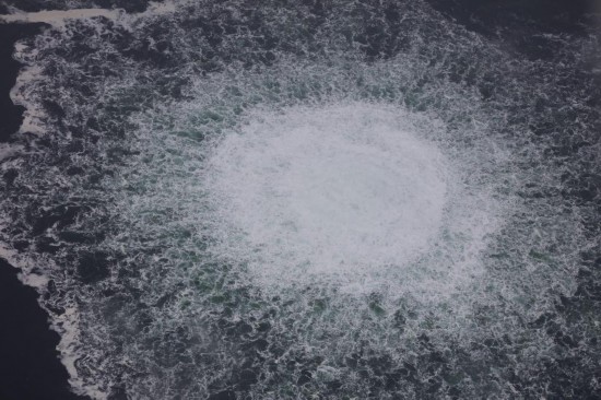 這張瑞典海岸警衛(wèi)隊2022年9月28日發(fā)布的航拍照片顯示的是,“北溪-1”天然氣管道仍在泄漏大量氣體。新華社發(fā)(瑞典海岸警衛(wèi)隊供圖)