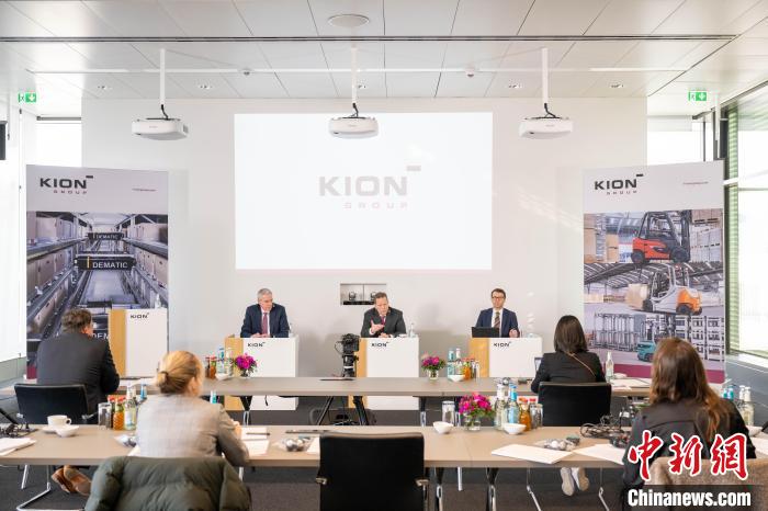 當(dāng)?shù)貢r間29日,德國凱傲集團(tuán)(KION Group)在法蘭克福召開新聞發(fā)布會發(fā)布2023財年業(yè)績。 (凱傲集團(tuán)供圖)