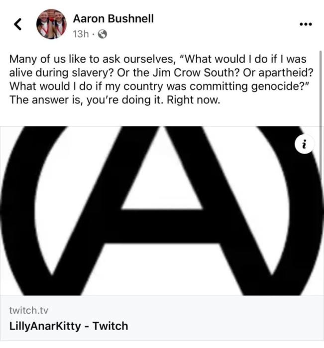 但最近的消息,顯示布什內(nèi)爾可能不是認(rèn)為美國(guó)“間接”幫助以色列種族滅絕,而是直接參與了。這些消息由《紐約郵報(bào)》(注意紐約郵報(bào)是偏右媒體,真實(shí)性自辨)披露,稱布什內(nèi)爾的朋友說(shuō)“(布什內(nèi)爾)告訴我,我們?cè)谀切┧淼览镉熊婈?duì),美國(guó)士兵參與了殺戮”,“(情報(bào))出現(xiàn)了美國(guó)軍方參與種族屠殺的情況”。