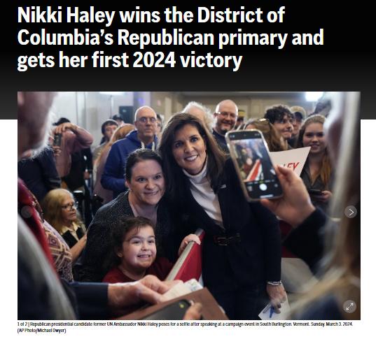 首次勝利!美媒:黑利贏得華盛頓特區(qū)共和黨初選