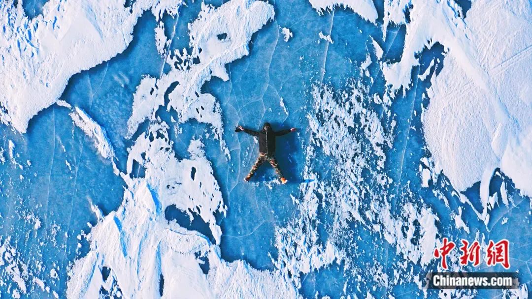 清澈的湖水冰凍后變成了深邃的藍色,被游客譽為“藍眼睛”。 田昊霖 攝