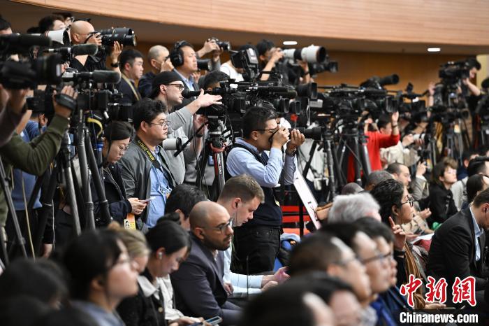 3月6日,十四屆全國人大二次會議在北京舉行記者會,國家發(fā)展和改革委員會主任鄭柵潔、財政部部長藍(lán)佛安、商務(wù)部部長王文濤、中國人民銀行行長潘功勝、中國證券監(jiān)督管理委員會主席吳清就發(fā)展改革、財政預(yù)算、商務(wù)、金融證券等相關(guān)問題回答中外記者提問。圖為中外記者在現(xiàn)場采訪。 中新社記者 何蓬磊 攝