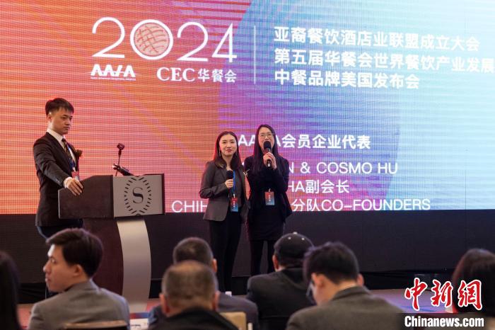 當(dāng)天,與亞裔餐飲酒店業(yè)聯(lián)盟成立大會同期舉行的還有第五屆華餐會世界餐飲產(chǎn)業(yè)發(fā)展大會暨中餐品牌美國發(fā)布會?;顒蝇F(xiàn)場,來自中美兩國逾400位餐飲界人士匯聚一堂,多名企業(yè)代表上臺分享經(jīng)驗,探討中餐品牌出海前景及本地亞裔餐飲行業(yè)未來發(fā)展。