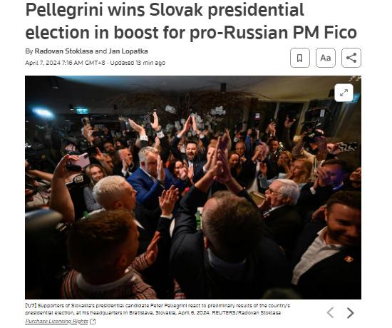 據(jù)報(bào)道,這是斯洛伐克統(tǒng)計(jì)局在統(tǒng)計(jì)了“幾乎所有投票站”的選區(qū)登記冊(cè)后公布的臨時(shí)非官方結(jié)果。佩列格里尼獲得了53.26%的選票,超過了前外交部長(zhǎng)伊萬·科爾喬克46.73%的選票。