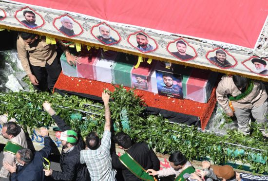 4月5日,在伊朗德黑蘭,人們參加伊朗駐敘使館遭襲事件中喪生的7名伊朗伊斯蘭革命衛(wèi)隊成員的葬禮。新華社記者沙達(dá)提攝
