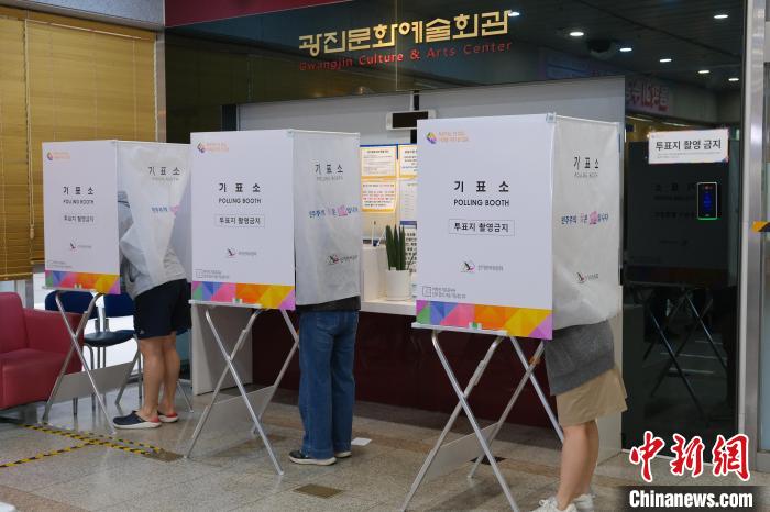 中新社記者當(dāng)天上午在首爾市廣津區(qū)一處投票站看到,選民陸續(xù)來到投票站,在完成現(xiàn)場登記并領(lǐng)取選票后,有序進入寫票所內(nèi)投票。