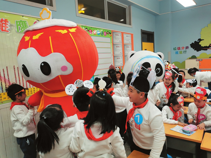 1月4日,太原市新建路小學(xué)內(nèi),冬奧會(huì)吉祥物“冰墩墩”“雪容融”正在與孩子們互動(dòng)。據(jù)了解,當(dāng)日該校開啟“樂考迎冬奧 一起向未來”一二年級(jí)樂考活動(dòng)。通過“冬奧”禮儀、“冬奧”吉祥物我來做等項(xiàng)目測評內(nèi)容,采用游園走班式樂考,讓孩子們在樂考中走近“冬奧會(huì)”、了解“冬奧會(huì)”。(記者阮洋攝)