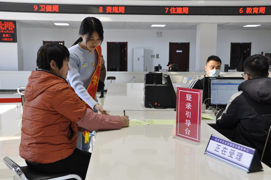 遷安市社會治理綜合服務(wù)中心工作人員引導群眾填表。 商立超攝