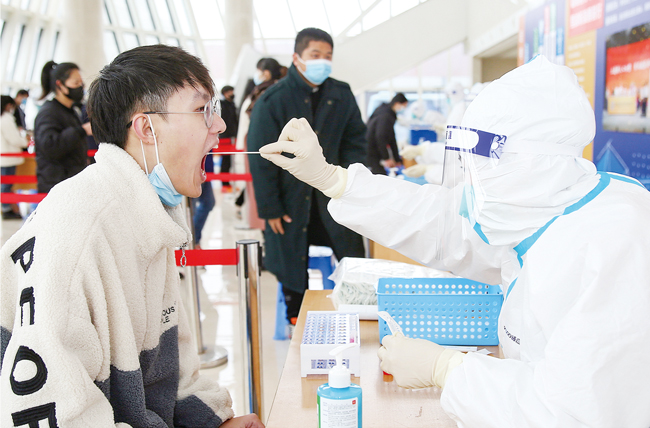 連日來,金華東陽醫(yī)護(hù)人員陸續(xù)來到一些學(xué)校給學(xué)生做核酸檢測,讓他們不出校門就拿到核酸檢測報(bào)告。大學(xué)生寒假返鄉(xiāng)高峰期來臨,面對復(fù)雜的疫情防控形勢,不少地方要求必須持核酸檢測陰性報(bào)告才能返鄉(xiāng)。(李建林)