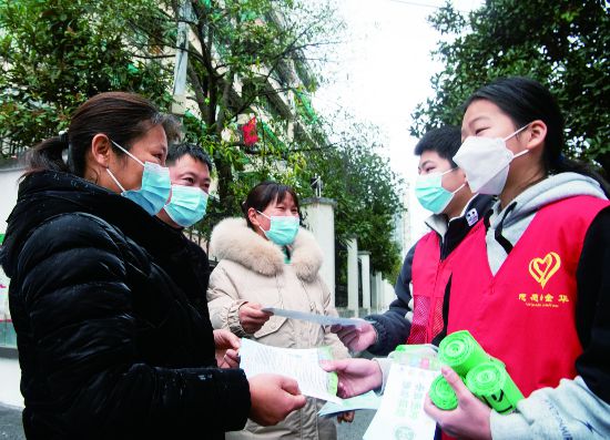 1月23日,在金華婺城區(qū)城西街道河盤橋社區(qū),租住在老肉聯(lián)宿舍等地的外來務(wù)工人員子女,趁著放寒假當(dāng)起垃圾分類宣傳員,給河盤橋社區(qū)居民分發(fā)宣傳冊,講解《金華市生活垃圾分類管理?xiàng)l例》和“兩定四分”投放規(guī)定,協(xié)助社區(qū)向居民贈(zèng)送垃圾袋。(時(shí)寬兵)