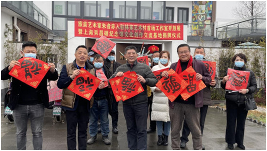 現(xiàn)場,朱者赤還即興提筆,墨躍紅紙,以倒序筆畫寫下福字,以此寄予“福到了”的新年祝福。作為入駐林家藝術(shù)村的第一批自由職業(yè)藝術(shù)家,朱者赤認(rèn)為,鄉(xiāng)村的自然恬淡能為藝術(shù)家的創(chuàng)作帶來許多靈感,而藝術(shù)賦能也會對美麗鄉(xiāng)村建設(shè)會起到推進(jìn)作用,他希望自己能在其中發(fā)揮作用,在不斷創(chuàng)作創(chuàng)新的同時(shí),讓更多藝術(shù)美走進(jìn)鄉(xiāng)村中去。