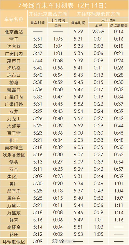 2月14日晚北京地鐵1號(hào)線八通線、2號(hào)線、7號(hào)線延長(zhǎng)運(yùn)營(yíng)時(shí)間