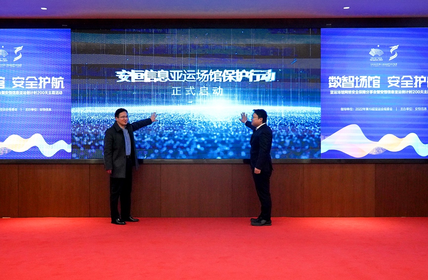 人民網(wǎng)杭州2月23日電 (張麗瑋)今天,杭州亞組委廣播電視和信息技術部副部長趙欣浩與安恒信息高級副總裁袁明坤共同啟動了“亞運場館網(wǎng)絡安全保護行動”。