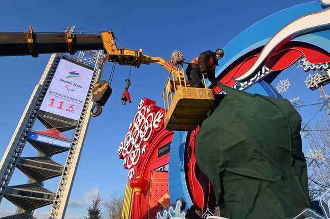 奧園公共區(qū)景觀標識有序轉換 北京冬殘奧會景觀26日全部“上線”