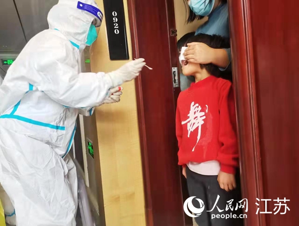 李莎莎在做核酸檢測。灌云縣委宣傳部供圖