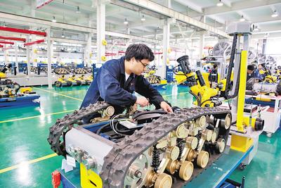 中信重工開誠(chéng)智能裝備有限公司組裝人員正在組裝消防機(jī)器人底盤。 中信重工開誠(chéng)智能裝備有限公司供圖