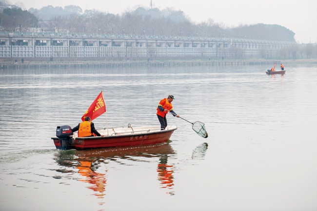 3月22日,金華蘭溪市蘭江江面上,護(hù)水人員駕駛打撈船巡河,及時(shí)清理漂浮物。當(dāng)天是第三十屆“世界水日”。近年來,蘭溪市護(hù)水人員每天在水面上巡邏,發(fā)現(xiàn)垃圾和漂浮物及時(shí)清理,確保江水干凈。(胡肖飛)