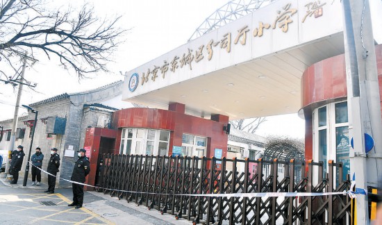 東城區(qū)分司廳小學(xué)門(mén)口已經(jīng)拉起警戒線,學(xué)校暫時(shí)停課。本報(bào)記者 蔡代征攝