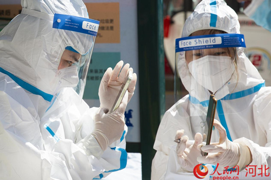 張振是滄州市人民醫(yī)院胃腸外科的護(hù)士。去年,他曾到藁城支援核酸采集工作。這一次,接到緊急任務(wù)通知后,有核酸采集經(jīng)驗(yàn)的他再次與同事奔赴核酸采集點(diǎn)?!扒皫滋煳覀冊诤游鞅苯稚鐓^(qū)采集核酸,每人每天大概要采600余人的樣本。”電話里,張振的聲音略微沙啞。