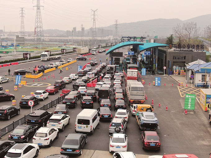 滬寧高速南京收費站執(zhí)法人員查驗駕乘核酸陰性證明
