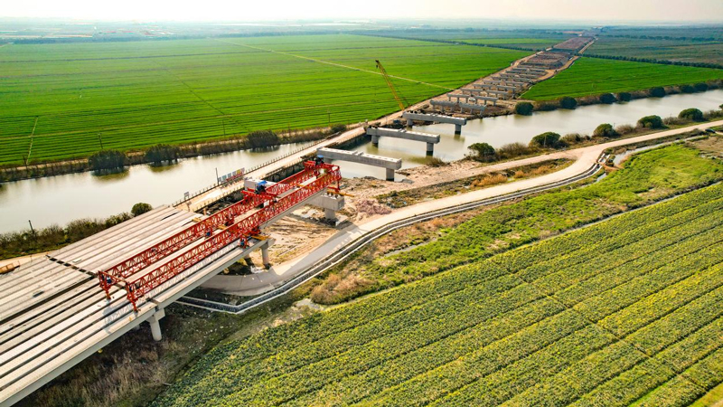 杭甬復線寧波一期項目濱海高架特大橋施工現場。浙交建設公司供圖