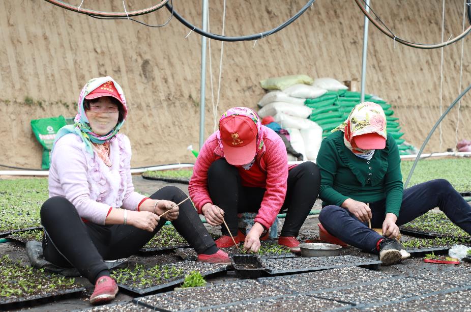 “這是剛長(zhǎng)成的辣椒苗,我們抓緊時(shí)間把它們移植到育苗盤里,一坑兒一苗兒?!闭谑炀氉龉さ?6歲村民薛愛說(shuō),“節(jié)令不等人,從3月初開始張羅營(yíng)養(yǎng)土配比,然后播種、澆水、移植和管護(hù),到5月中旬進(jìn)入銷售高峰,我們就一直在這里忙?!?/p>