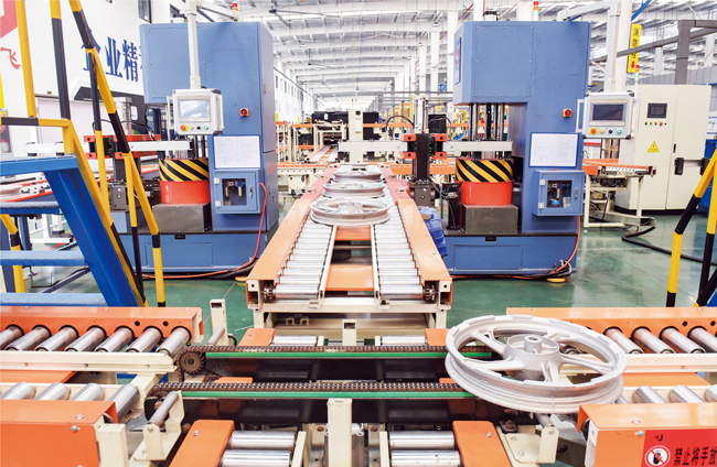 3月30日,在位于金華婺城區(qū)摩輪未來工廠生產(chǎn)車間里,智能生產(chǎn)線正在平穩(wěn)運行,全自動完成設(shè)定的輪轂加工工序。該工廠被金華市和婺城區(qū)列為數(shù)字化示范企業(yè)。企業(yè)運用5G、視覺識別等新一代信息技術(shù),大量應(yīng)用工業(yè)機器人,實現(xiàn)柔性化生產(chǎn),建成裝備數(shù)字化、工藝數(shù)字化、運營數(shù)字化的數(shù)字化工廠。用工人數(shù)比傳統(tǒng)項目減少58%,生產(chǎn)效率提升15%。(陳俊、李建林)