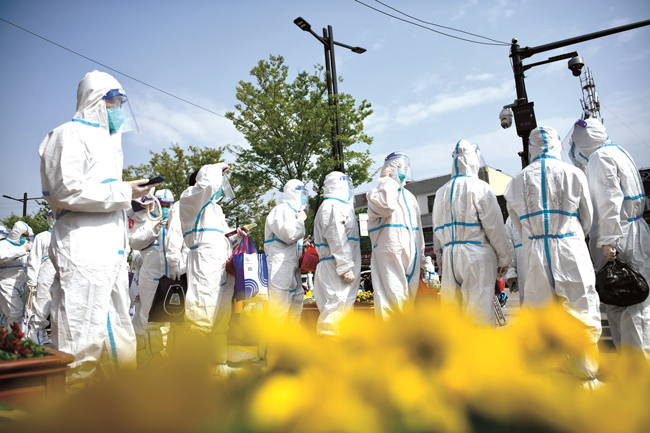 3月30日,嘉興經(jīng)開區(qū)城南街道新月公寓的居民,在工作人員的引導(dǎo)下,有序登上疫情防控專用大巴,前往各醫(yī)學(xué)觀察隔離點(diǎn)。(王振宇)