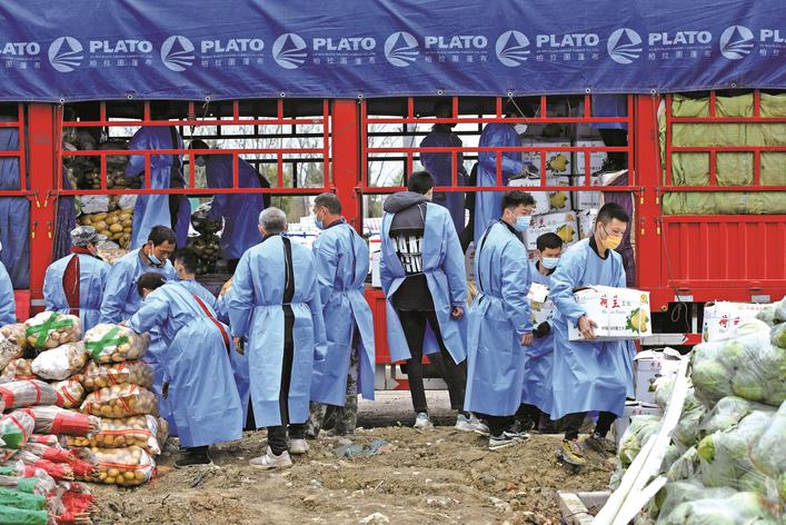 3月31日,掛著魯H、豫D、蘇H、皖B等地牌照的蔬菜運送車輛,陸續(xù)進入嘉興秀洲區(qū)臨時蔬菜批發(fā)市場。這些車上運來的蔬菜,經過現場交易后,正源源不斷地送抵市民餐桌上。(馮玉坤)