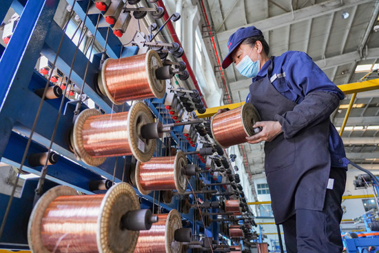 在河北省唐山市豐南區(qū)一家線纜制造企業(yè)生產車間內,機器設備正常運行,工人在崗位有序生產。 李福政攝