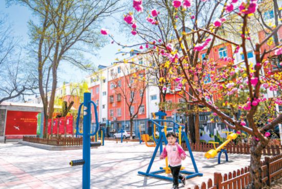 大興區(qū)興豐街道老小區(qū)黃村西里社區(qū)在居民的共同維護下,居住環(huán)境整潔舒適。圖為提升后的社區(qū)廣場上,小朋友正在樂享春光。本報記者 武亦彬攝
