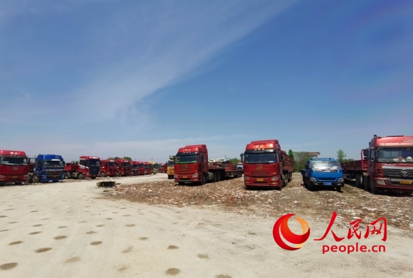 南通市崇川區(qū)陳橋街道疫情防控外來貨車集中停車點(diǎn)。人民網(wǎng)記者 王繼亮攝