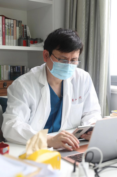 張文宏和專家連線會診各定點醫(yī)院的重癥患者。
