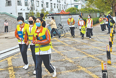 穿著反光背心,排成整齊的隊列,從校門口出來,一抹抹“熒光綠”成為天津市薊州區(qū)惹人關注的街頭一景。