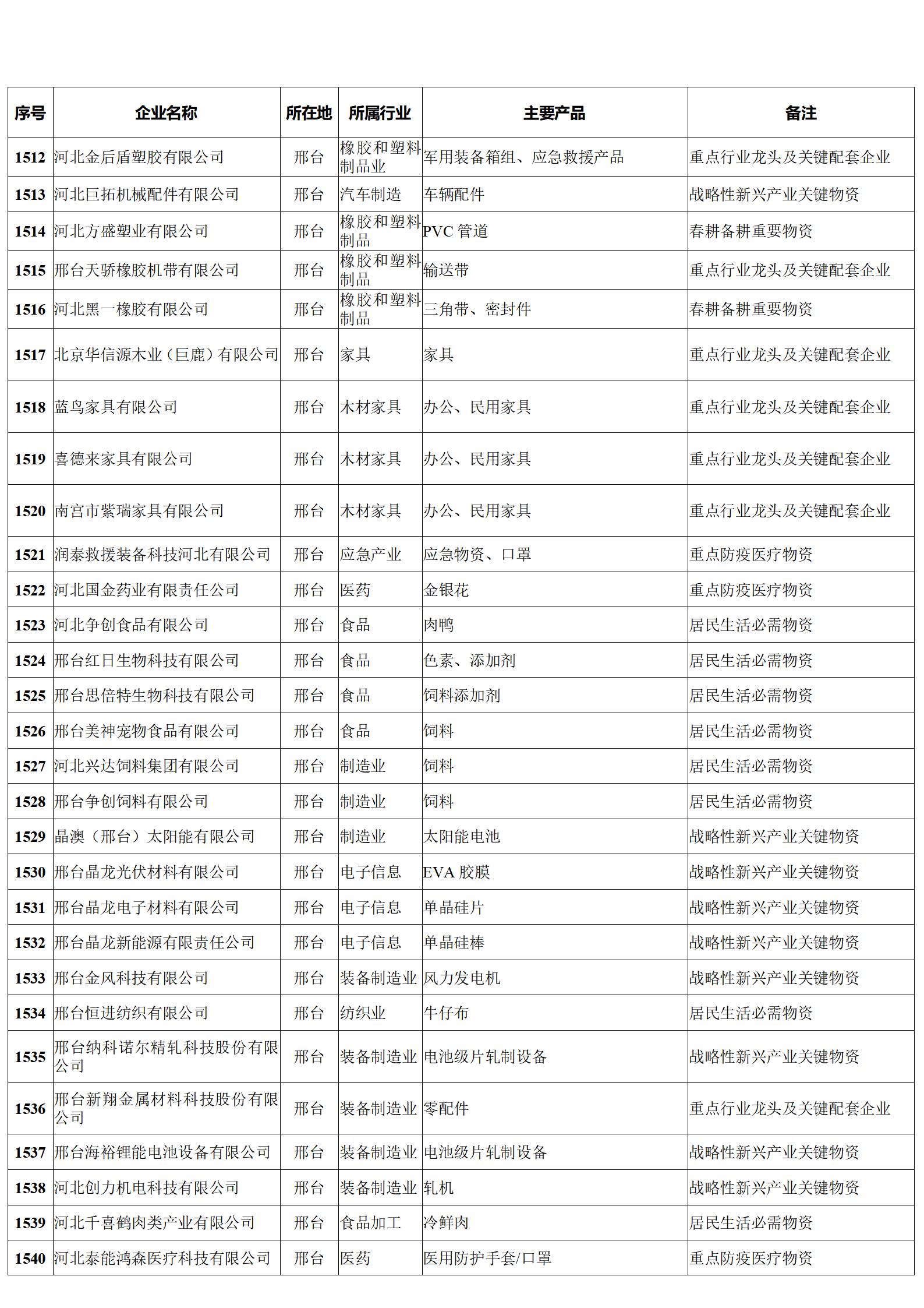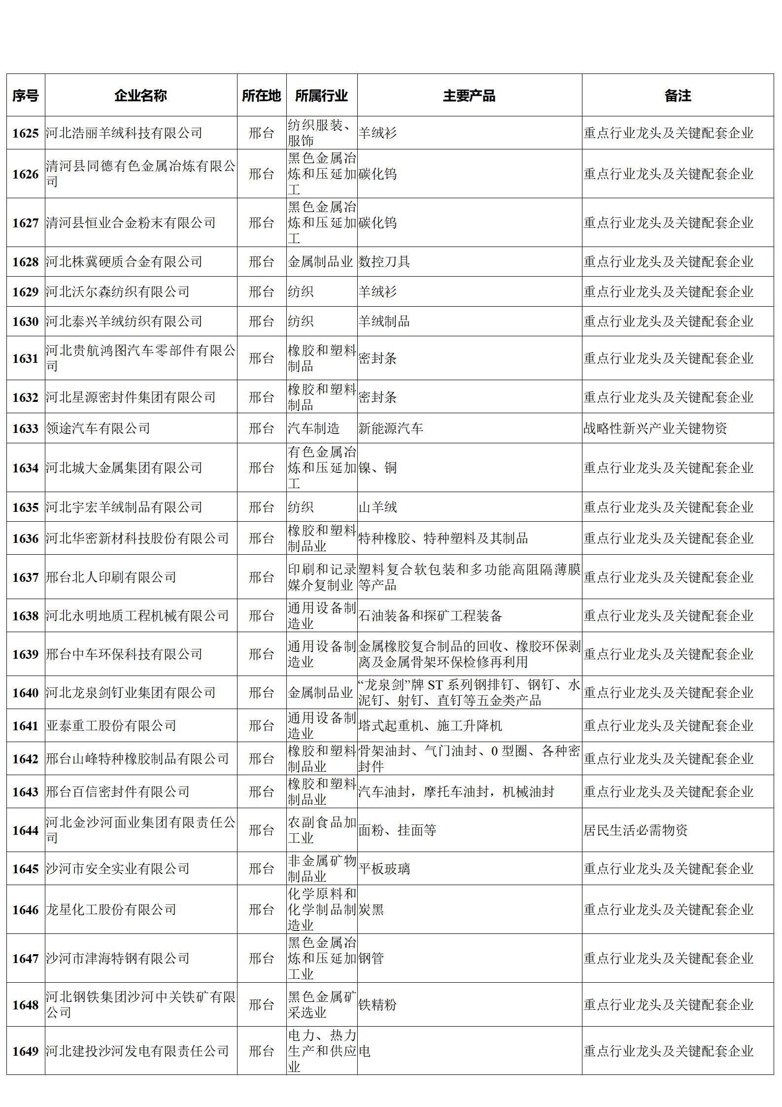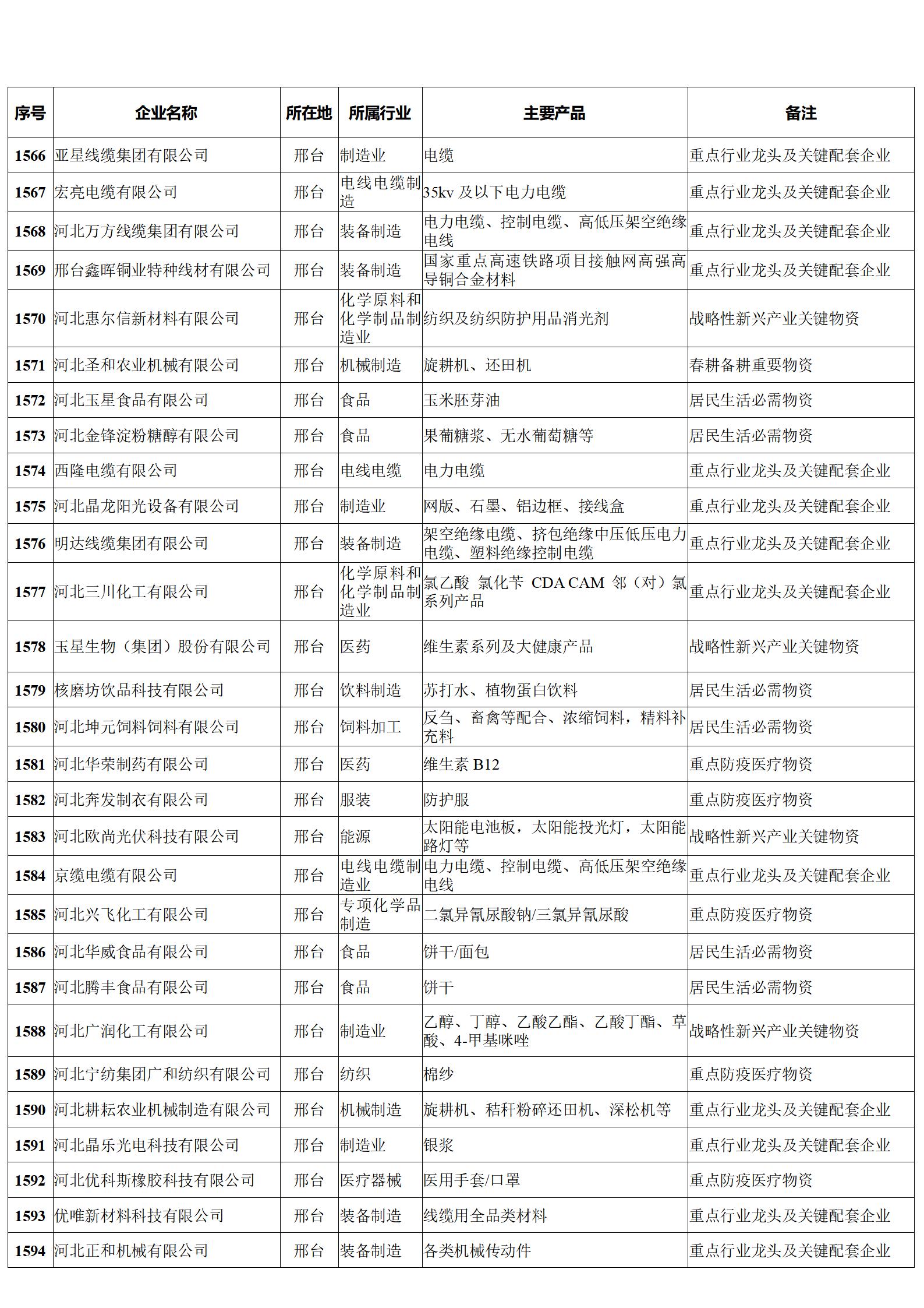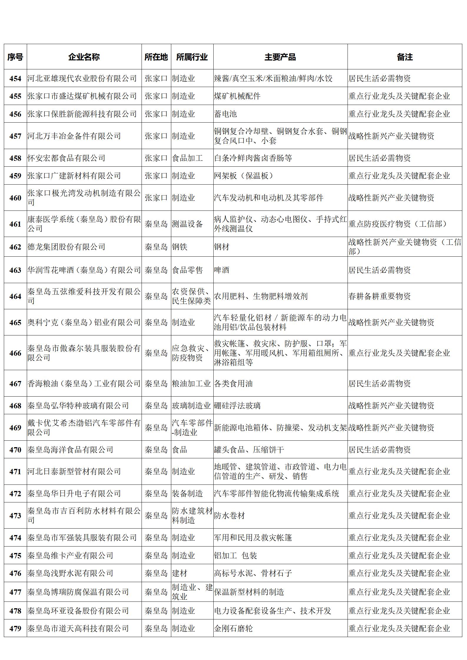 河北省重點(diǎn)產(chǎn)業(yè)鏈供應(yīng)鏈“白名單”企業(yè)