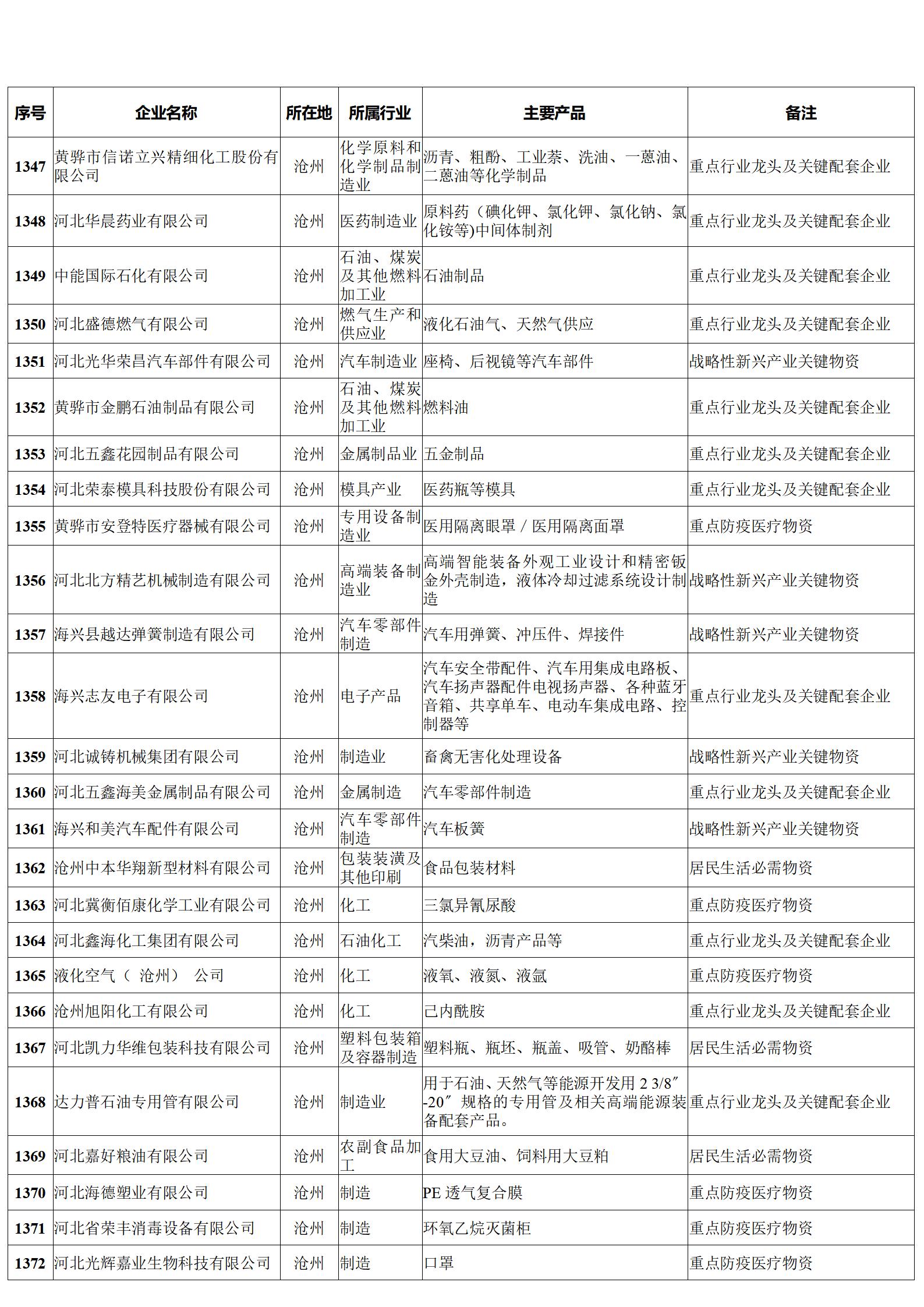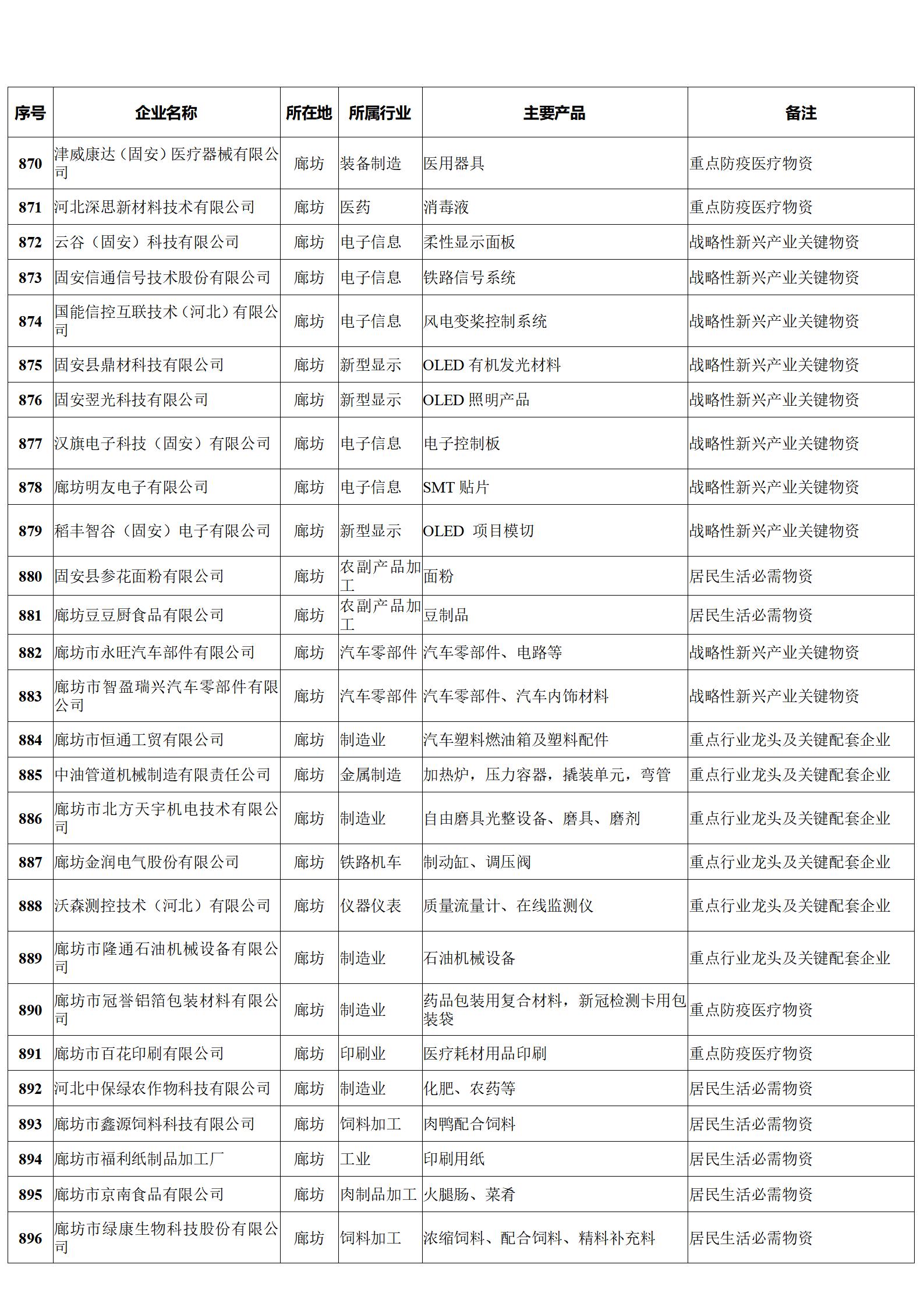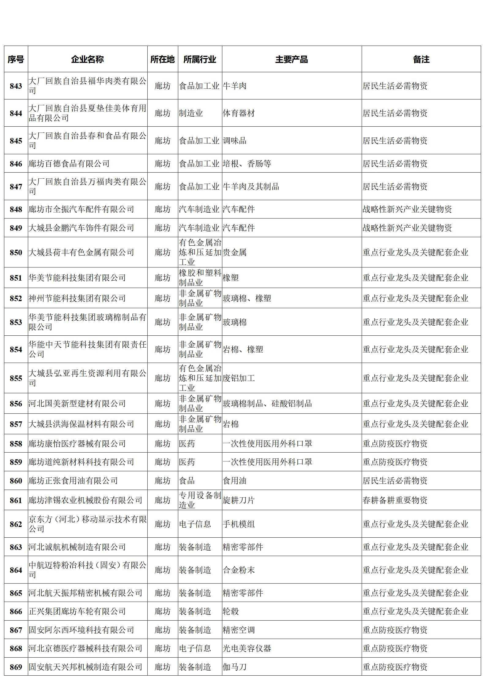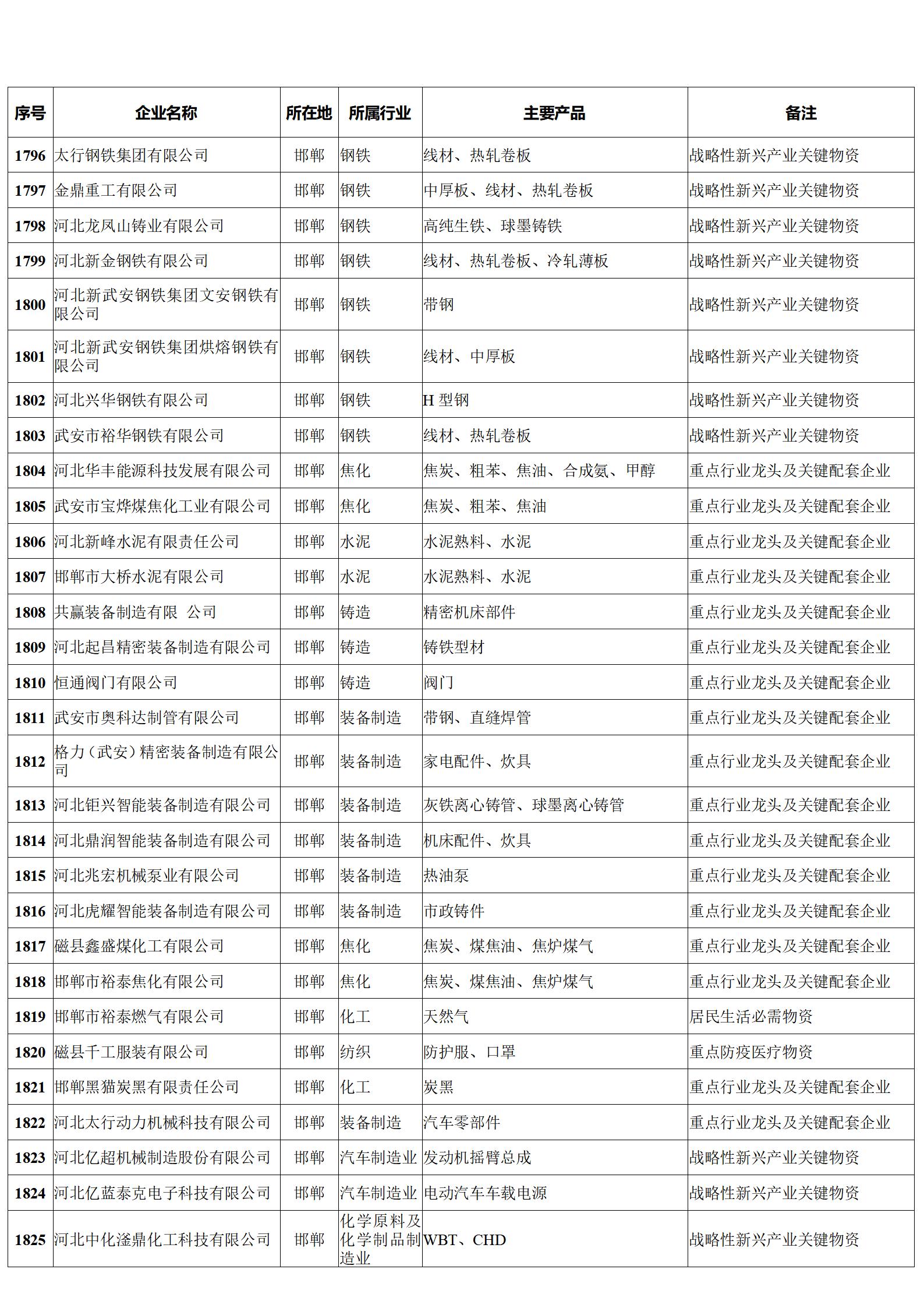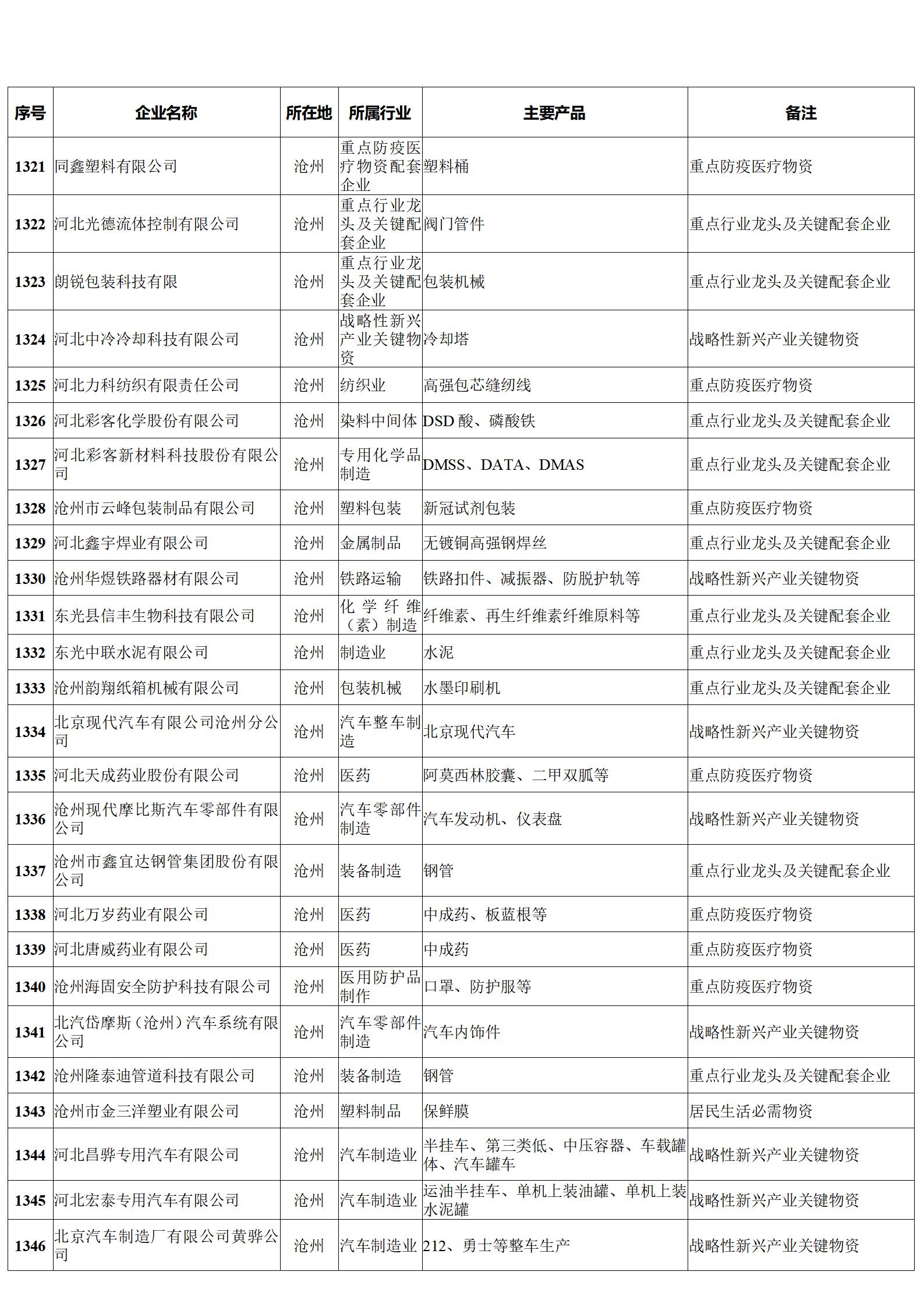 河北省重點(diǎn)產(chǎn)業(yè)鏈供應(yīng)鏈“白名單”企業(yè)
