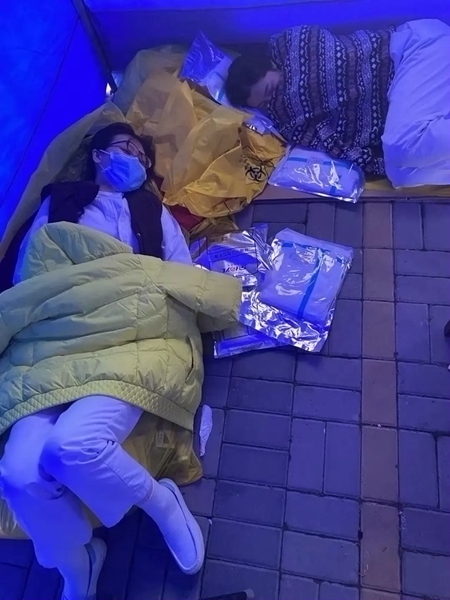 就地休息的醫(yī)護人員。
