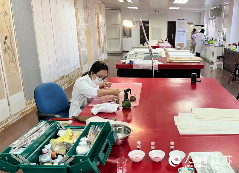 現(xiàn)在,越來越多的年輕人加入到這份彰顯情懷和定力的工作中來。陳思燚說,“我們就是‘書畫醫(yī)生’,修復書畫的過程,就是給文物看病治療的過程。”目前,在南博從事書畫修復工作的團隊已有9人,主要以80后、90后為主力。