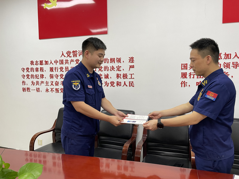 預(yù)備黨員周亞超即將于5月28日轉(zhuǎn)正,在這個特殊節(jié)點,他感觸頗深:“成為預(yù)備黨員以來,我深刻感受到了作為黨員的責(zé)任和要求,我將更加注重工作方法,虛心向老黨員學(xué)習(xí),做好本職工作,不斷爭先創(chuàng)優(yōu),發(fā)揮好模范帶頭作用……”“希望周亞超同志不忘入黨初心,牢記黨的宗旨,增強(qiáng)黨員意識,奮發(fā)有為,勇于擔(dān)當(dāng),在為黨和人民事業(yè)不斷作出貢獻(xiàn)的同時,書寫好自己的人生華章。”指導(dǎo)員高鵬翔說。