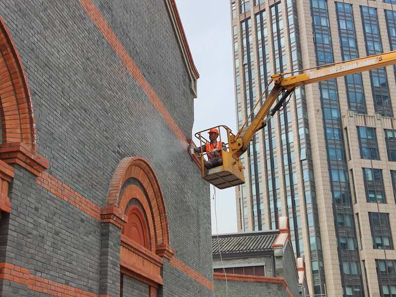 來到工程現(xiàn)場時,該公司的技術(shù)團(tuán)隊(duì)正在對杭州奧體中心體育場館的外立面進(jìn)行清洗,祛除表面油漬和污垢,再噴涂企業(yè)自主研發(fā)的一種二氧化鈦水溶性溶膠涂料——HPC光催化自潔涂膜?!肮饩€射入時,涂膜內(nèi)部會形成光柱,光催化材料會被激活,持續(xù)光催化反應(yīng)。”鄭凱介紹,HPC光催化自潔涂膜的二氧化鈦納米粒子粒徑保持在5至30納米級,整個性狀非常穩(wěn)定,從而保證了涂膜在噴涂墻上后長時間保持良好的光催化反應(yīng)效果長效性和高活性。
