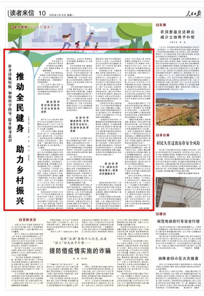 推動(dòng)全民健身戰(zhàn)略在廣大農(nóng)村地區(qū)更好地落地實(shí)施,要幫助農(nóng)民實(shí)現(xiàn)從“要我健身”到“我要健身”的觀念轉(zhuǎn)變。一些讀者發(fā)現(xiàn),舉辦優(yōu)質(zhì)的賽事可以提高體育場地設(shè)施的利用率,還能帶動(dòng)更多農(nóng)民對(duì)體育鍛煉產(chǎn)生興趣。