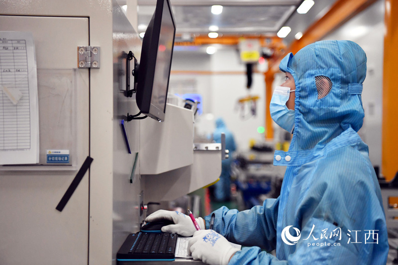 江銅集團(tuán)南昌高新產(chǎn)業(yè)園內(nèi)的工人正在車間內(nèi)作業(yè)。人民網(wǎng) 時雨攝