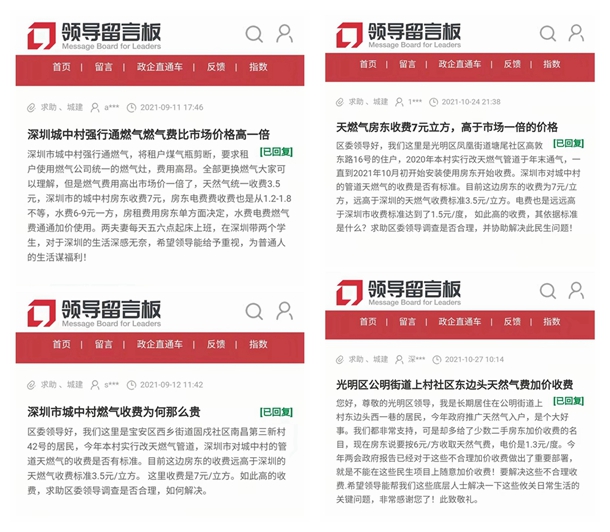 近年來(lái),隨著深圳全力推進(jìn)城中村管道燃?xì)飧脑?,“二房東”亂收燃?xì)赓M(fèi)的現(xiàn)象層出不窮。多位深圳網(wǎng)友曾在人民網(wǎng)“領(lǐng)導(dǎo)留言板”留言,反映房東收取的燃?xì)赓M(fèi)遠(yuǎn)高于《深圳市燃?xì)鈨r(jià)格制度標(biāo)準(zhǔn)》。“政府推廣天然氣入戶(hù),是個(gè)大好事,我們都非常支持,可是卻給了少數(shù)二手房東加價(jià)收費(fèi)的名目?!币晃痪W(wǎng)友說(shuō)。