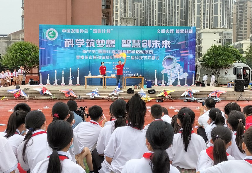 5月24日,由南寧市科技館、橫州市教育局、橫州市科學技術協(xié)會主辦的“科學筑夢想 智慧創(chuàng)未來”南寧市“燎原計劃”科創(chuàng)研學活動展示暨橫州市橫州鎮(zhèn)柳明小學第二屆科技節(jié)開幕式在橫州市舉辦。南寧市科技館黨支部書記、館長,南寧市青少年科技中心主任蒙科祺出席活動并為開幕式致辭。