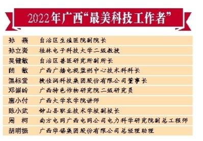 近日,2022年廣西“最美科技工作者”發(fā)布儀式在廣西廣播電視臺舉行,對廣西“最美科技工作者”進行表彰,并向社會發(fā)布“最美科技工作者”的先進事跡。
