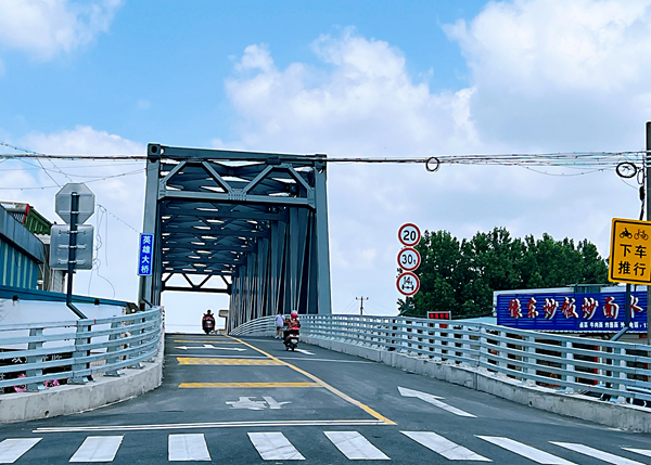 民之所盼,政之所向。2021年4月,通州區(qū)、劉橋鎮(zhèn)兩級(jí)政府啟動(dòng)英雄大橋重建程序,劃撥2800萬元專項(xiàng)資金用于建橋,緊接著5月確定施工方案、6月進(jìn)場施工、12月完成橋墩沉臺(tái)施工。今年1月,主橋鋼桁架吊裝完成。