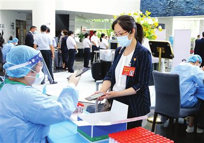因新冠疫情防控需要,此次黨代會(huì)實(shí)行全程閉環(huán)管理?!罢?qǐng)您先測(cè)一下體溫。”工作人員熱情地引導(dǎo)著。代表們佩戴口罩,保持間距,有序完成測(cè)溫、驗(yàn)碼、安檢、流調(diào)、核酸檢測(cè),隨后全身心投入到參會(huì)各項(xiàng)準(zhǔn)備工作。