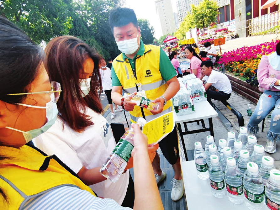 6月20日,太原市交通運(yùn)輸綜合行政執(zhí)法隊(duì)在太原二十七中考點(diǎn)規(guī)范周邊環(huán)境,為考生及家長(zhǎng)提供免費(fèi)騎行服務(wù),并提供礦泉水和休息處。(圖由孫榮祥 段賀鵬攝)